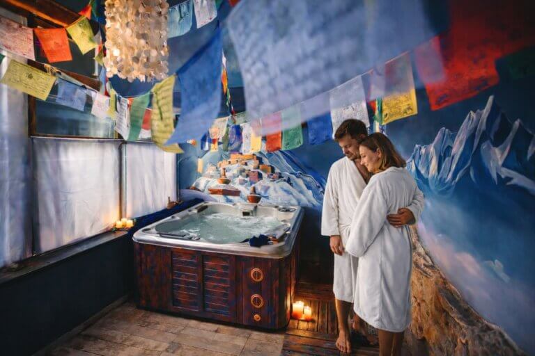 Le chemin pavé de la cour vous conduira peut-être vers le Spa Himalaya, installé dans une ancienne forge rénovée et entièrement privatisé pour les hôtes. Dans cette ambiance inspirée du Tibet, le jacuzzi chauffé et la balnéothérapie offrent un moment de détente absolue, idéal pour un séjour bien-être ou un week-end romantique proche Paris.